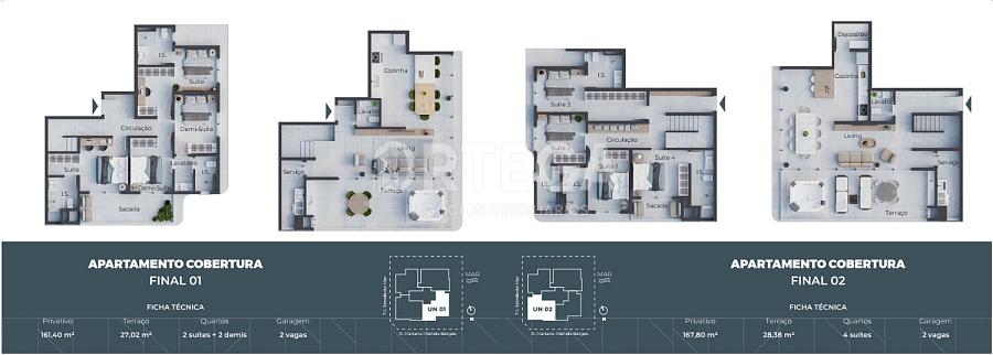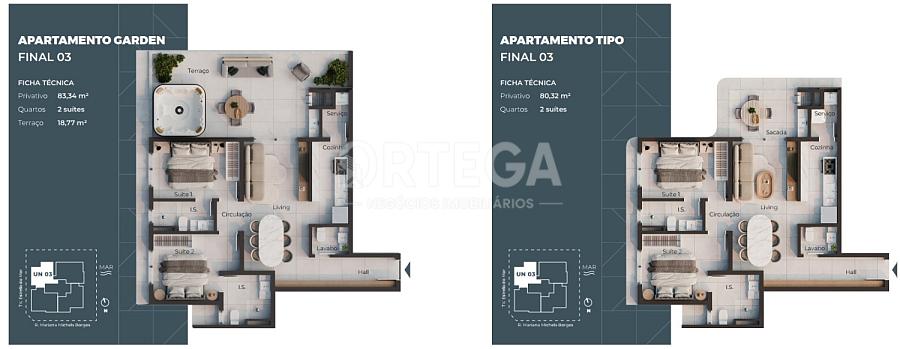 O edifício tem 11 pavimentos, 25 unidades e duas salas comerciais, Com opções que vão de 80.32m² á 161.40 m², 02 a 04 suítes, gardens e coberturas.