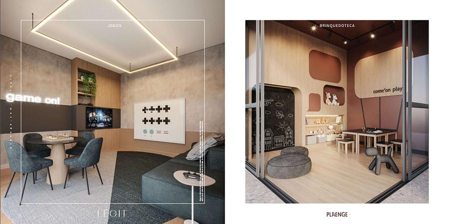 Para o lazer nas horas de descanso o condomínio conta com: - Piscina - Deck molhado - Gourmet com piscina privativa - Academia - Funcional - Quadra - Pool lounge - Salão de festas - Burger house - Sala de jogos - Bicicletário - Brinquedoteca - Playground - Praças e áreas de convivência - Market - Office - Depósito privativo - Delivery. Todos os ambientes da área comum do condomínio já serão entregues decorados e mobiliados.