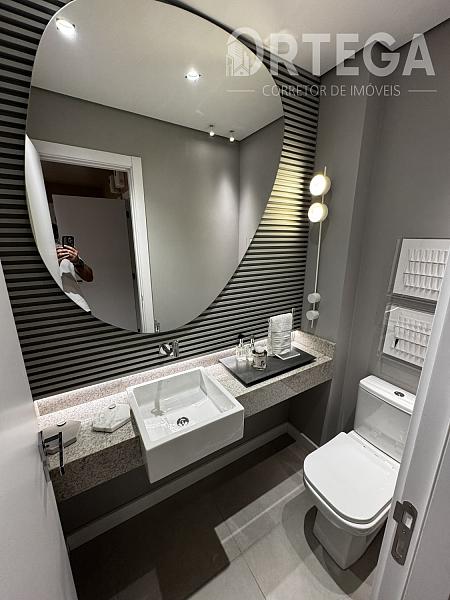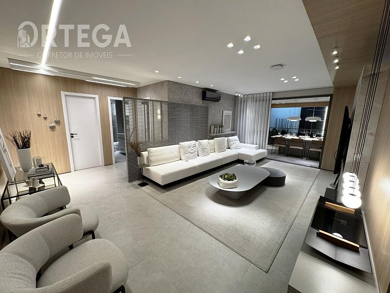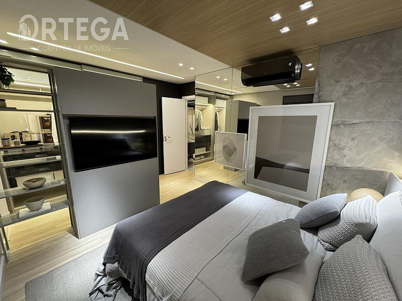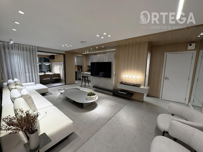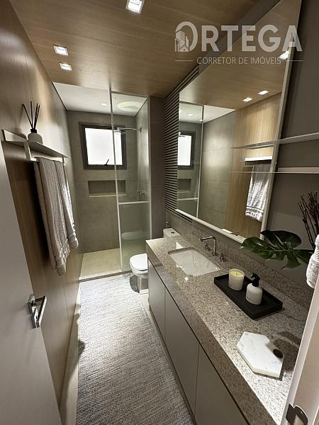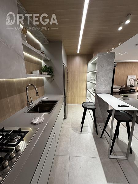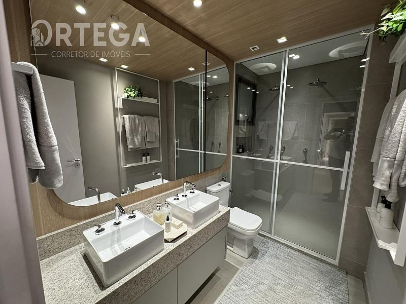 O apartamento contempla: 119m² privativos, sendo uma suíte com espaço para closet e dois quartos, Lavabo, sala e copa integradas com cozinha e sacada com churrasqueira a carvão, área de serviço e duas vagas de garagem. Acabamento Alto Padrão, Tomadas USB, Cuba e ducha dupla no banho máster. Janela com persiana integrada e automatizada, Infraestrutura completa de ar condicionado E Medidores de água, luz e gás individuais.