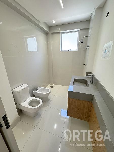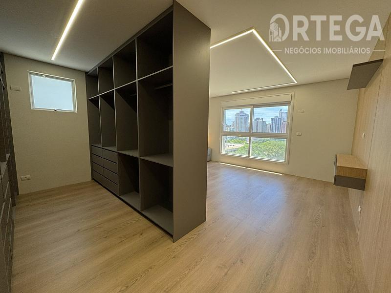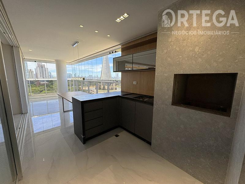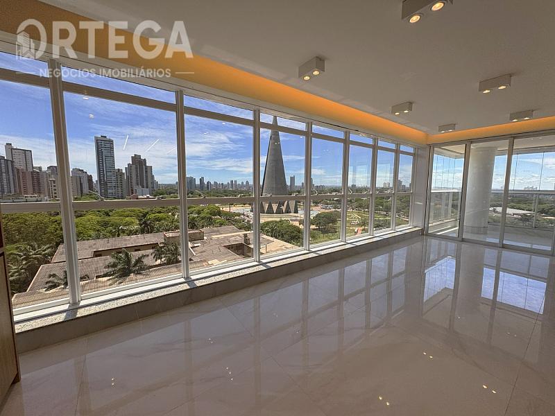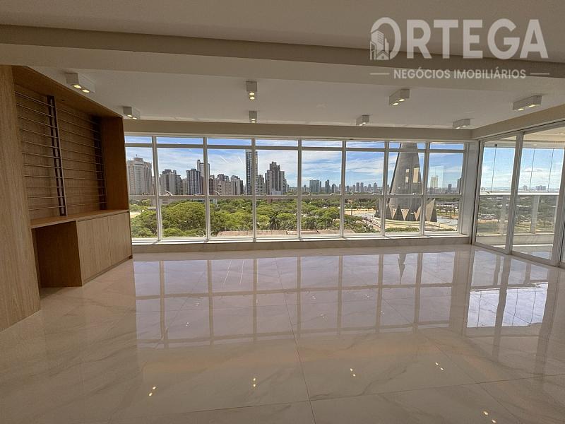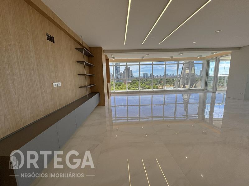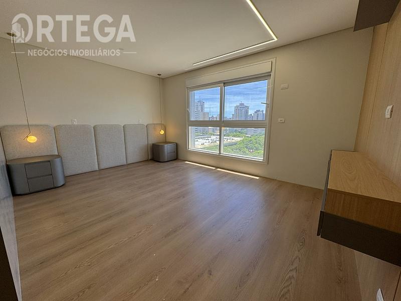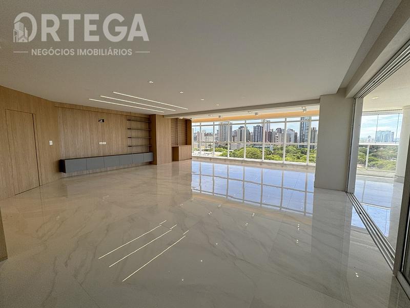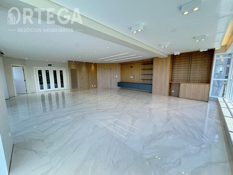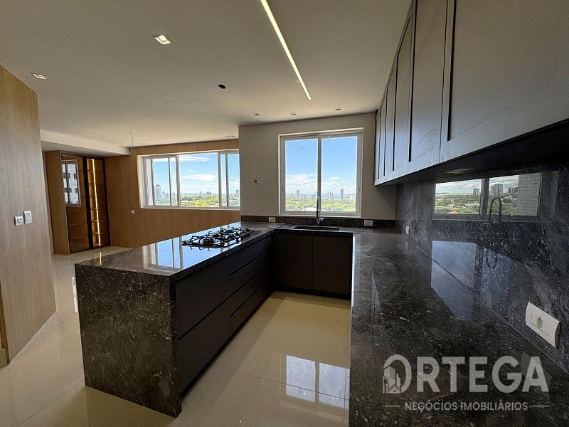 Contempla: 303m² privativos, sendo 04 suítes com espaço bem amplo, entre elas uma master com banheira, sala com espaço bem amplo e sacada com churrasqueira carvão com uma vista encantadora, escritório, lavabo,  cozinha e copa, área de serviço, mais 01 quarto ou despensa com banheiro e quatro vagas de garagem. Espera para split, Fechadura com senha na porta de entrada, Gás Individual, Hidrômetro Individual e Infraestrutura para água quente.