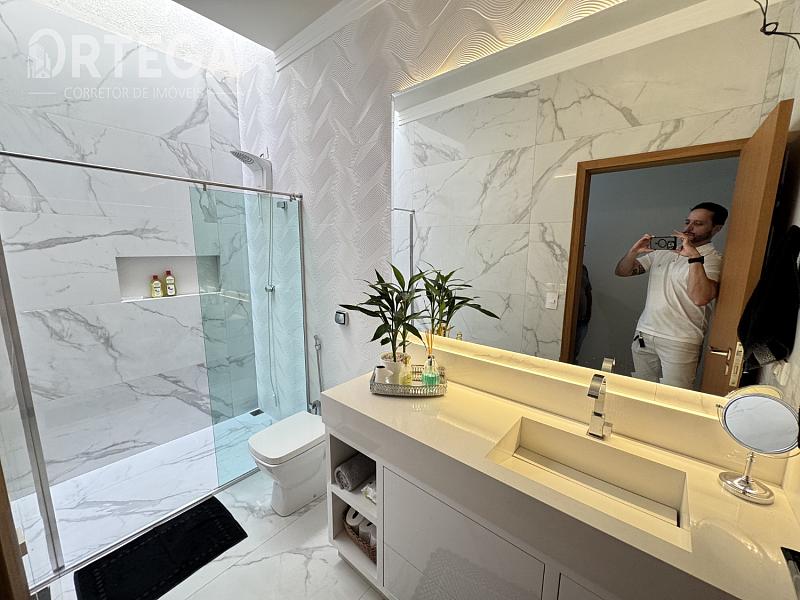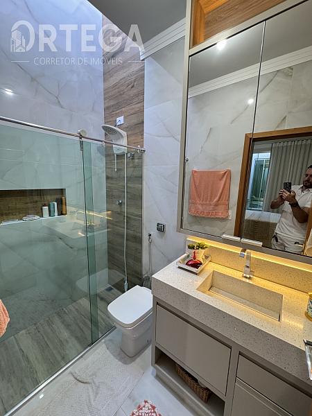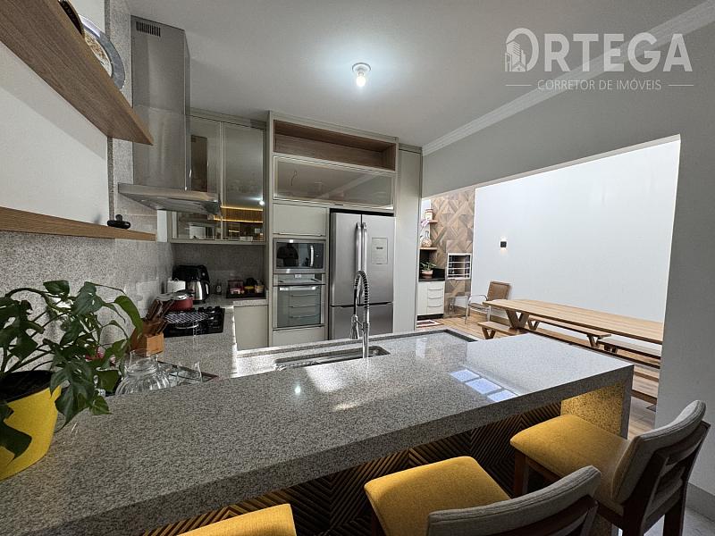 - Contempla: 01 suíte com planejados + 02 dormitórios, banheiros com planejados, 01 sala com pé direito alto, Cozinha e copa com móveis planejados, espaço gourmet com planejados e teto retrátil, lavanderia com planejados, um charme de casa. Garagem pra 2 carros paralelos