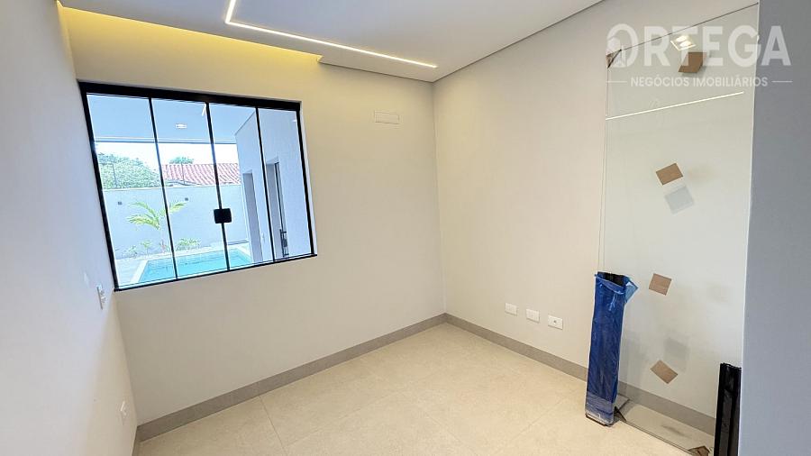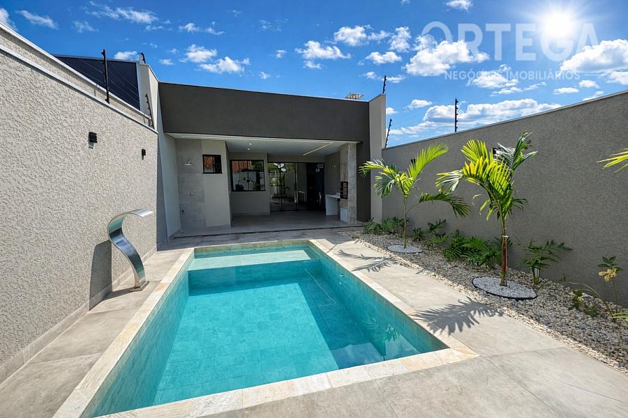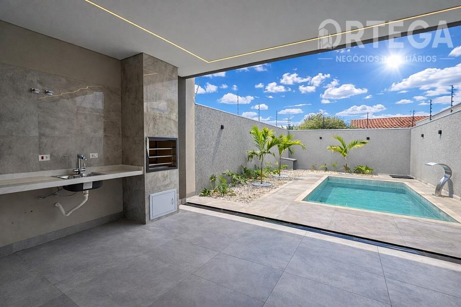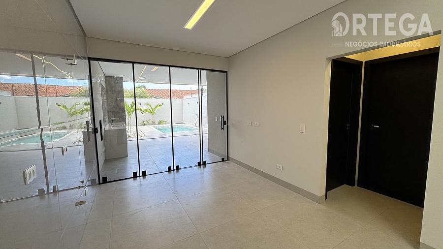 - Contempla: 03 Quartos sendo 1 suíte (com BOX), BWC social ( Com BOX), BWC LAVABO, Sala e copa com pé direito alto, Cozinha com blindex sanfonado para integração com área gourmet, Lavanderia com tanque em inox e toda fechada, Área Gourmet com pia em porcelanato esculpido, Piscina Aquecida, com Cascata,Hidromassagem e LED, Garagem Paralela.